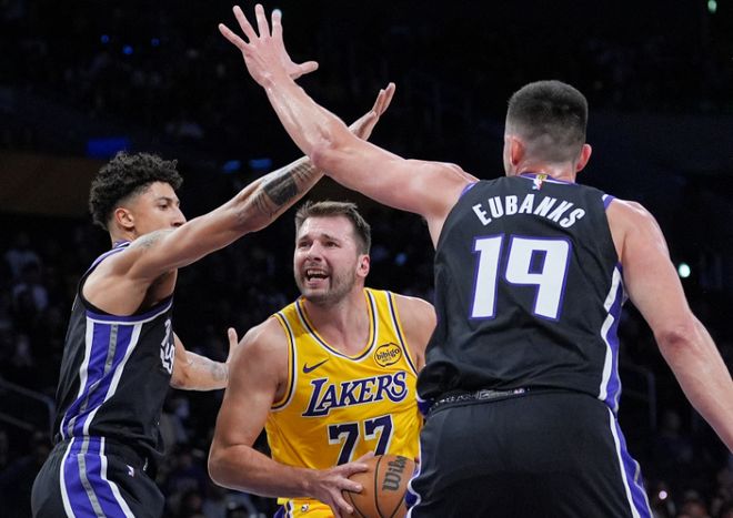 中场休息回来,琼斯上篮命中,文森特三分与艾顿中投扩大优势,施罗德连追4分。湖人内外开花一波10-1攻势扩大11分优势打停国王,国王连追6分,施罗德被斯马特踩掉鞋崴脚下场。湖人连得5分,国王连追5分,东契奇与埃利斯对攻一记三分,埃利斯追防斯马特受伤下场,双方接连罚球得分。斯马特中投得分,雷诺2+1命中,斯马特再得2分,三节结束湖人90-86领先国王。前三节比赛双方均是5人得分上双,拉文与埃利斯均是15分,东契奇24+5+8与八村垒16分。